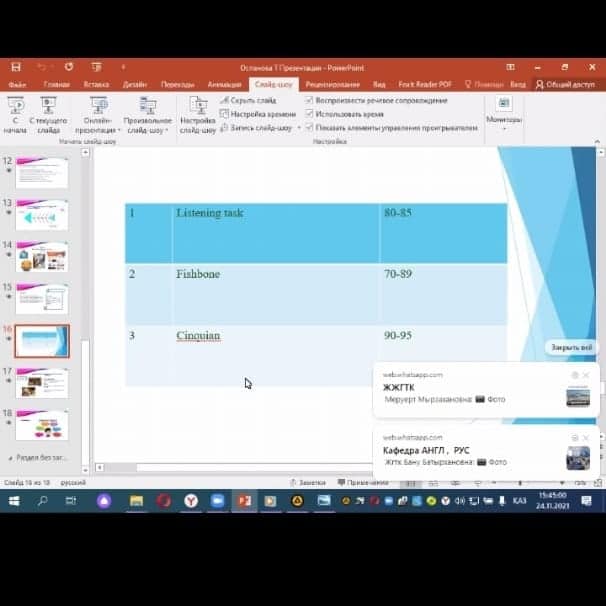 At the practical lesson "opportunities of the applied bachelor's degree program", organized by the educational and Methodological Center for the Development of Education in the Almaty region, the English teacher of the Zharkent Higher Humanitarian and Technical College, Master Ospanova Tolganai Serikovna shared her experience. The techniques of "critical thinking", "Fishbone", "Cinquain", "Apostle", feedback were effectively used in the lesson. The students were able to evaluate themselves, demonstrate knowledge, skills, and abilities.