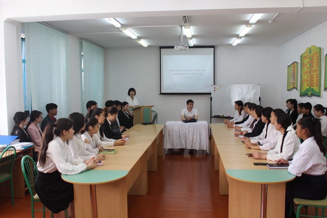 In Zharkent Higher Humanitarian and Technical College on April 9, 2022, the information was presented by members of the Safe Internet faction. What do young people gain by surfing the Internet? for the future. The guest of the meeting, Ibraimov Sayat Nurkasymovich, future scholarship holder, PhD student of pedagogical Sciences in Europe, holder of the international future program and Nazarbayev Scholarship, founder of PedAkademia, director of the Aqniet education school, explained to students the meaning of the word "Safe Internet" that young people should use the rational side of the Internet. Analyzing the reasons that make students spend most of their time online, he demonstrated the most important features of the Internet for ordinary users, including effective work with the help of "Google keep". The social network said that there are both benefits and harms, that we should receive only what is useful, not what is harmful. During the meeting, he also shared his opinion on proper time planning. Students asked their questions and expressed gratitude to Sayat Nurkasymovich.