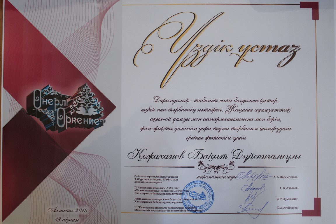 «ӨНЕРЛІ ӨРКЕНИЕТ» АТТЫ РЕСПУБЛИКАЛЫҚ ӘН-БИ БАЙҚАУЫНА ҚАТЫСЫП, «АСПАПТА ОЙНАУ» ЖӘНЕ «ЭСТРАДАЛЫҚ ВОКАЛ» НОМИНАЦИЯЛАР БОЙЫНША ЖҮЛДЕЛІ І ЖӘНЕ ІІ ОРЫНДАРДЫ ЖГТК СТУДЕНТТЕРІ ИЕЛЕНДІ