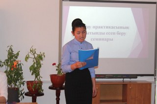 Практиканың қорытынды есеп беруіне арналған шараны практика жетекшісі Н. Асанова ұйымдастырды. Студент – машықкерлер аталған шарада белсенділік танытып, бірқатар есеп беру жұмыстарын білім ғаламшарына саяхат жасау арқылы көрсетті. «Білім жолымен Smart планетаға» жол тартып, біліктілік дәрежелерін көрсете алды. Білім ғаламшарына сапар барысында өздері меңгерген білік пен дағды, шығармашылық қабілеттері «Нұр Олжа» байланыс орталығымен байланыстырып, «шексіз білім» тарифтік жоспарын бекітті.