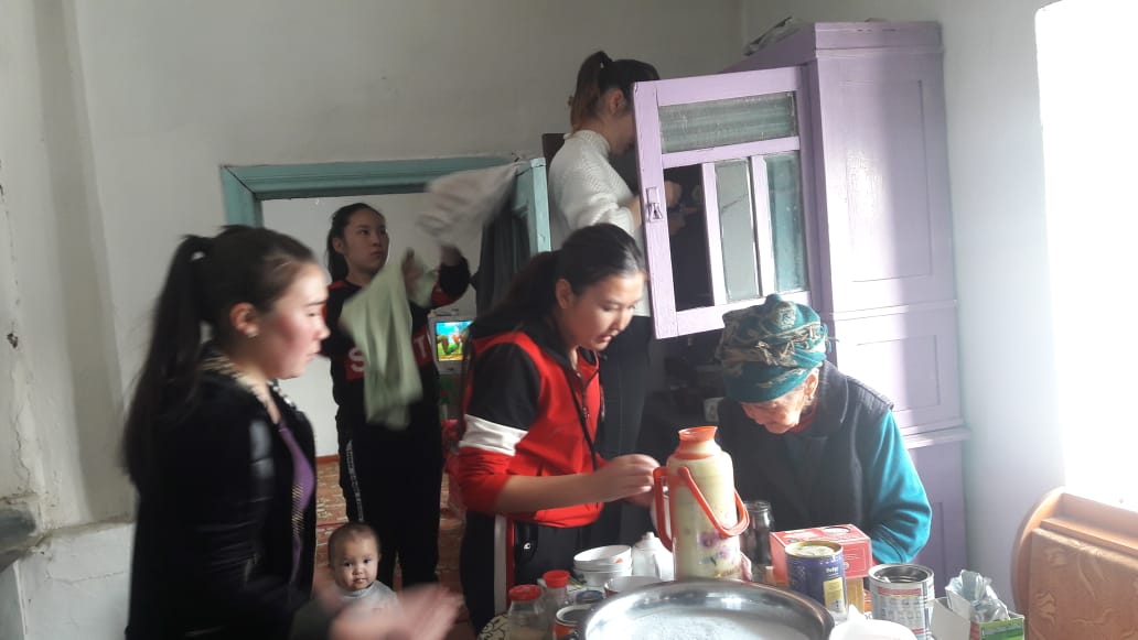 Ерікті ұлдарымыз ауланың қарын күреп,отын жарса,қыздарымыз үйдің ішіне тазалық жұмыстарын жүргізді. Жұмагүл апа ерікті жастарымызға өзінің алғысын білдіріп ақ батасын берді.