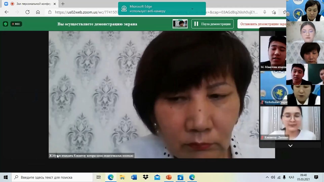 Облыстық білім беруді дамыту оқу-әдістемелік орталығының ұйымдастырылуымен наурыздың бесі Республикалық «Фариза Оңғарсынова өлеңдерінің идеялары» тақырыбында Жаркент жоғары гуманитарлық-техникалық, Ж.Мусин атындағы Көкшетау жоғары қазақ педагогикалық және М.Мәметова атындағы Қызылорда жоғары педагогикалық колледждерімен онлайн кіріктірілген сабақта іс-тәжірибесімен оқытушылар,студенттер арасында іс-тәжірибе алмасты.