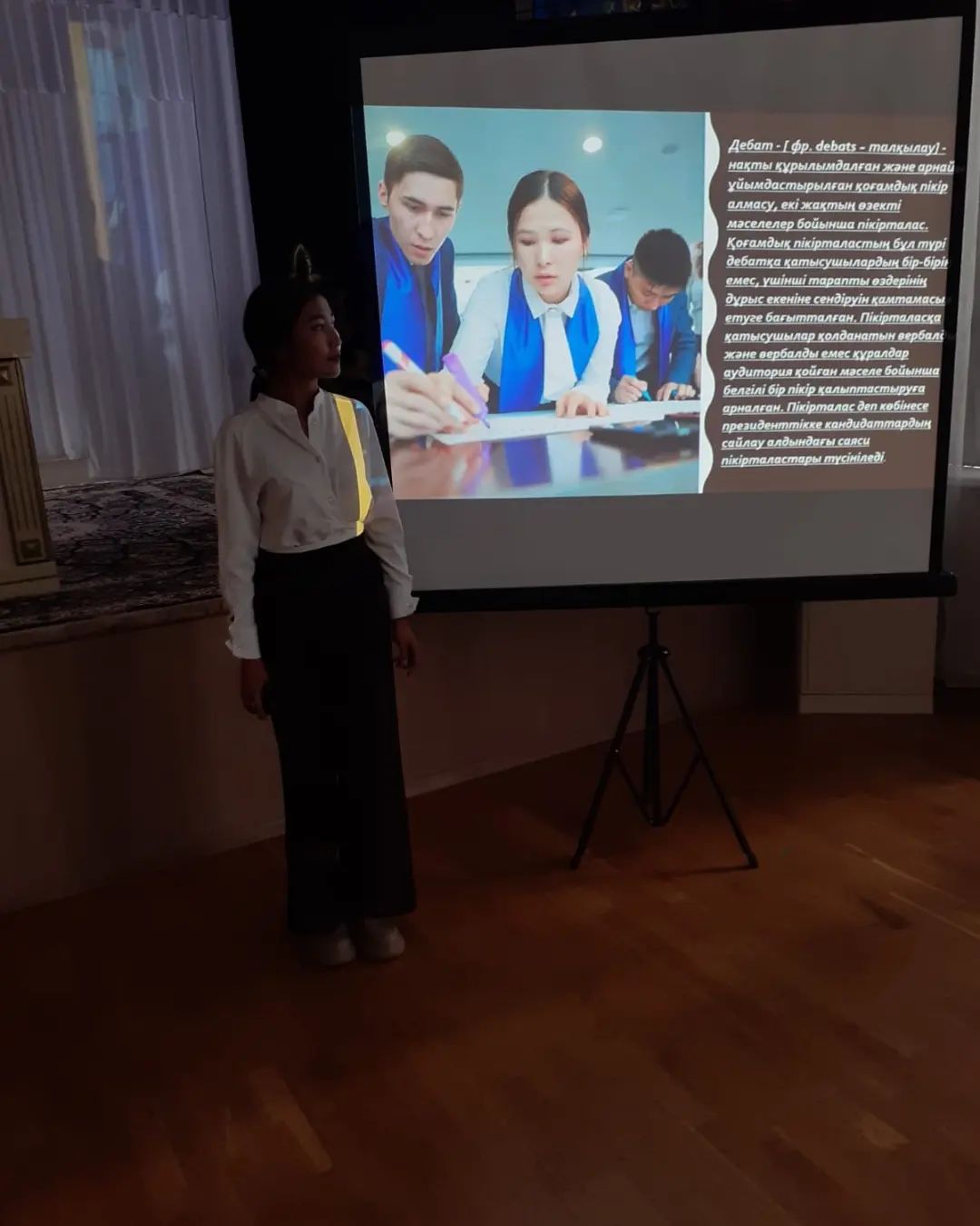 12.09.2022 жылы Жаркент жоғары гуманитарлық-техникалық колледжінің «Мәңгілік ел жастары» өзін-өзі басқару ұйымының «Дебат фракция» көшбасшысы А. Жақан әр топтан сайланған дебат фракция мүшелеріне дебат жастарға не береді, дебаттың негізі ережелері, кезеңдері туралы түсіндірді. Алдағы уақыттағы жоспарларын таныстырды.