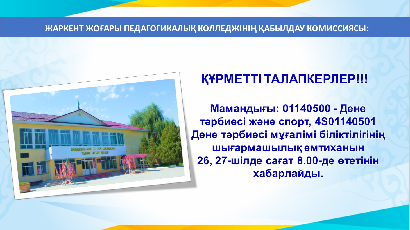 ЖАРКЕНТ ЖОҒАРЫ ПЕДАГОГИКАЛЫҚ КОЛЛЕДЖІ