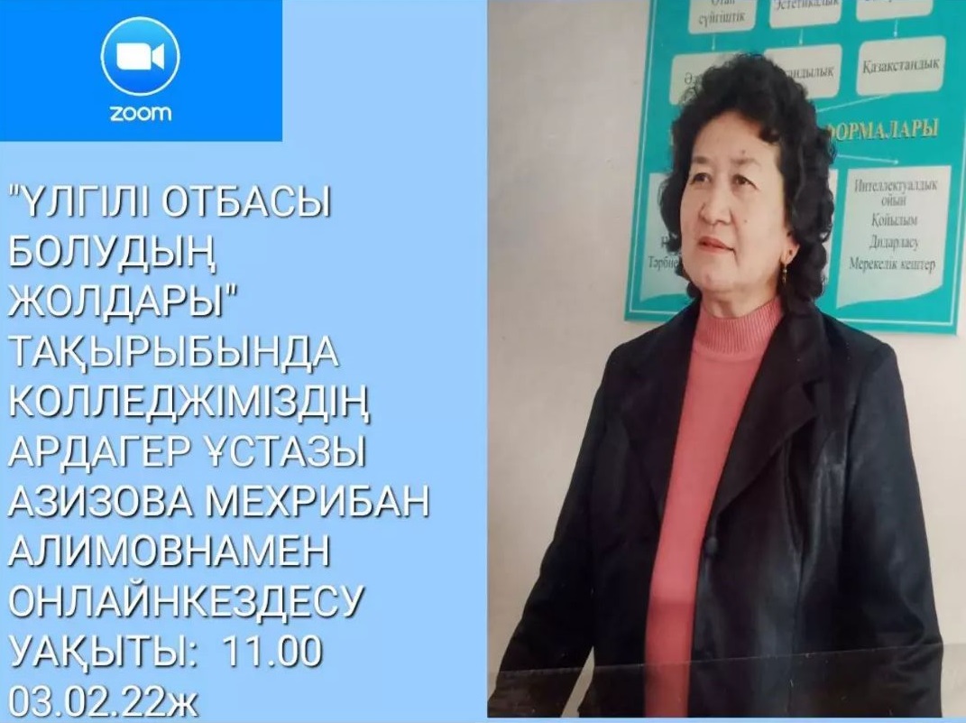 04.02.2022ж күні Жаркент жоғары гуманитарлық техникалық колледжінде «Үлгілі отбасы болудың жолдары» тақырыбында колледжіміздің ардагер ұстазы Азизова Мехрибан Алимовнамен онлайн кездесу өтті. Ардагер ұлағатты ұстазымыз студенттерге отбасы болудың жолдарын, ұстаз болудың жан-жақты қырларын, түсіндіріп өз ойымен бөлісті және студенттердің сұрақтарына жауап берді. Кездесуді "Бастауыш білім беру"мамандығының 303топ кураторы С.Рахметдинова ұйымдастырып,өткізді.