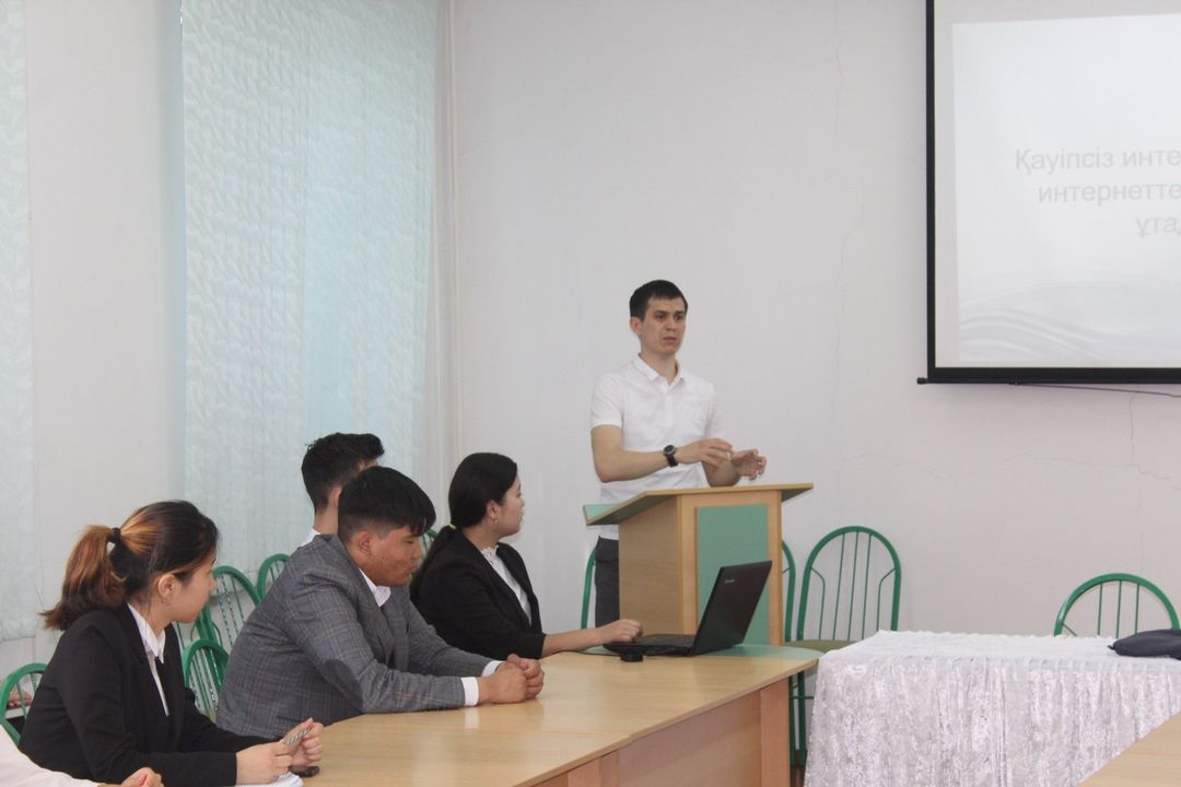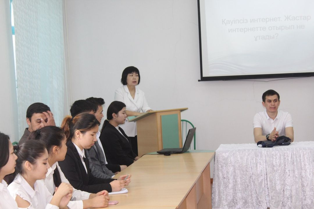 Жаркент жоғары гуманитарлық-технмкалық колледжінде "Балалар жылы" аясында 9 сәуір 2022 жылы ақпарат фракция мүшелерімен «Қауіпсіз интернет. Жастар интернетте отырып не ұтады?» тақырыбында кездесу өтті. Кездесу қонағы Болашақ стипендиаты, Европада Педагогика ғылымдарының докторанты, Халықаралық Болашақ бағдарламасы мен Назарбаев стипендиясының иегері, PedAkademia-ның негізін қалаушысы, Aqniet education мектебінің директоры Ибраимов Саят Нұрқасымұлымен білім алушыларға «Қауіпсіз интернет» сөзінің мағынасын, жастар интернеттің ұтымды жағын пайдалану керек екендігін түсіндірді. Білім алушыларға өз уақытының көп бөлігін желіде қалдыруға мәжбүр ететін себептерді талдай отырып, қарапайым пайдаланушылар үшін ең маңызды Интернет мүмкіндіктерін соның ішінде «google keep» арқылы тиімді жұмыс жасауды көрсетті. Әлеуметтік желінің пайдасы да, зияны да бар екенін, біз тек пайдалысын алып, зиянынан алыстап отырғанымыз абзал екенін айтты. Кездесу барысында уақытты дұрыс жоспарлау жайлы да ой бөлісті. Студенттер өздерінің сұрақтарын қойып, Саят Нұрқасымұлына ризашылықтарын білдірді.
