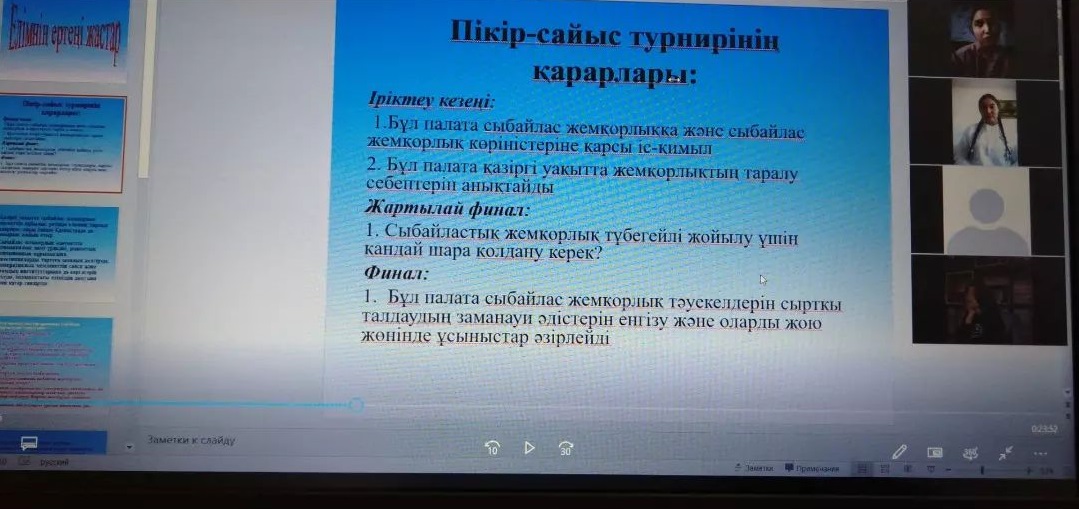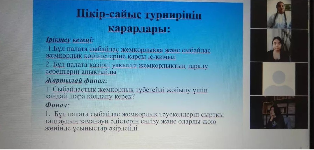 2022 жылдың 31 қаңтар күні Жаркент жоғары гуманитарлық-техникалық колледжінің "Мәңгілік Ел жастары" өзін-өзі басқару ұйымының «Жеті жарғы» дебат фракция мүшелері ұйымдастырумен 1 курстар арасында «Елімнің ертеңі жастар» тақырыбындағы дебат турнирі өтті. Ереже бойынша турнир АПФ форматында өтілді. Қызу пікірсайыс нәтижесінде «жүзден жүйрік, мыңнан тұлпар» шыққандар анықталды: 1 орын-«Алғыр» командасы 110 топ, 2 орын-«Жеңіс» командасы 105 топ, 3 орын-«Томирис» командасы 101 топ марапатталды.