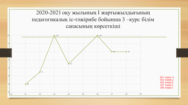 3 курстар бойынша 305, 306, 307, 308 топтар жоспар бойынша, кестеге сәйкес белгіленген мектеп базаларында «байқау» және «таңдау» іс-тәжірибесінен өтті. Практика кезінде студенттердің оқу-тәрбие жұмыстарында байқалған жақсы жақтары көп болды: өздеріне сенімді болып, еркін ұстауы, жауапкершілікті сезінуі, машықкерлер әр сабақтарында жаңа технология элементтерін, жаңартылған білім беру мазмұнының әдіс-тәсілдерін, ойын әдіс-тәсілдерін, кері байланысты түрлі жолдармен көрсете білді. Сонымен бірге, кемшіліктер де кездесті. Студенттердің сабақта әлі де сыныпты ұйымдастыру және тәртіпті орнатуда, барлық оқушылардың білімін бақылау, жетекші сұрақтар қоя білу, уақытты тиімді пайдалануда қиналатыны байқалды.