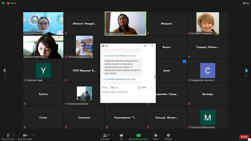 27 апреля 2021 года в соответствии с планом работы учебно-методического центра развития образования Алматинской области в организациях технического и профессионального образования организованы открытые онлайн-занятия преподавателей, имеющих квалификационную категорию «Педагог-мастер».На данном мероприятии преподаватель казахского языка и литературы Жаркентского высшего гуманитарно-технического колледжа, внештатный тренер НАО «Talap», педагог-мастер Нурбекова Акмарал МАМЕТКАЗЫЕВНА поделилась своим опытом работы в 101 группе по специальности «начальное образование» по предмету казахская литература на тему «поэма Маралтая Райымбекулы «лидер».