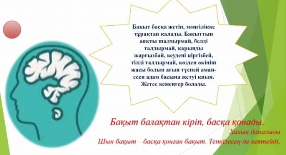Да, счастье трудно достичь в голове, не задев ноги, не подтянув талию, не разорвав живот, не вытянув грудь, не вытянув язык, не вытянув из глаз слезы сожаления. -Я не хочу, чтобы ты знал, что я не могу, - сказал он. Мудрый народ сказал, что» счастье придет из детства и поселится в другом". Истинное счастье-это счастье другого человека. Такое счастье не исчезнет, - подытожила автор сказку А. Сембаевна, сделав обратную связь, и предложила включить ее в школьную программу.