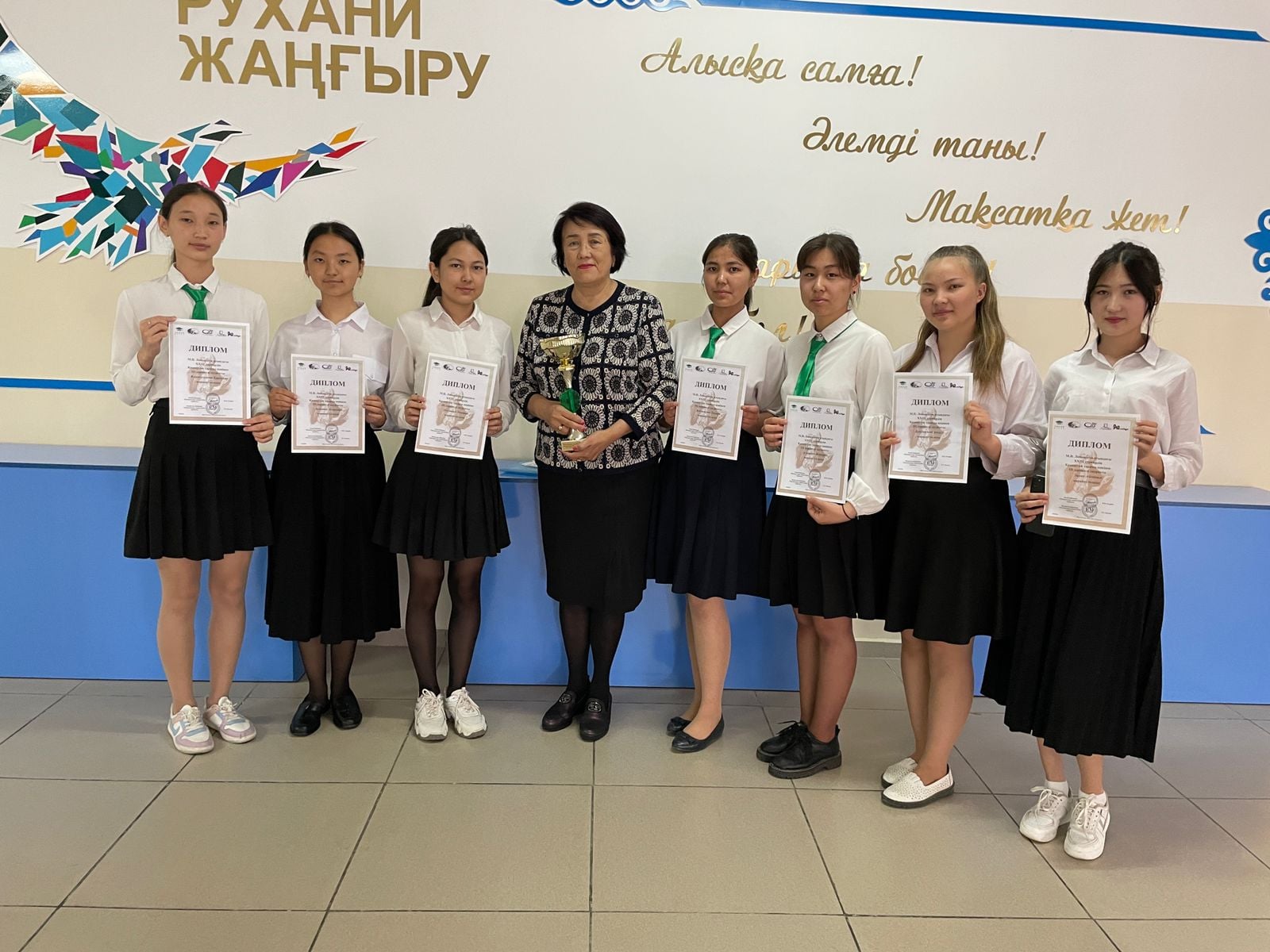 Студенты XXIII турнира имени М. В. Ломоносова завоевали Кубок М. В. Ломоносова по истории Казахстана. Руководитель Жакубаева Меруертхан Мырзахановна